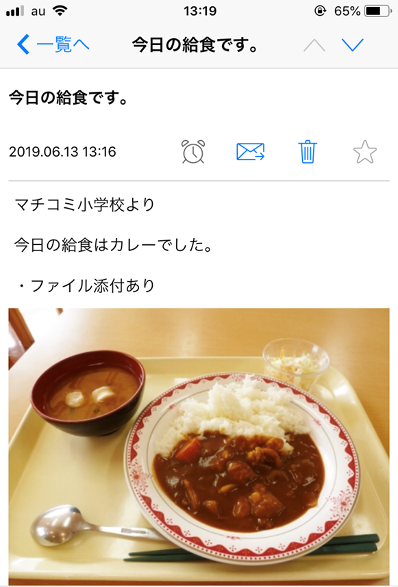 アプリ内の連絡を表示すると、以下のように本文に写真が確認できます。