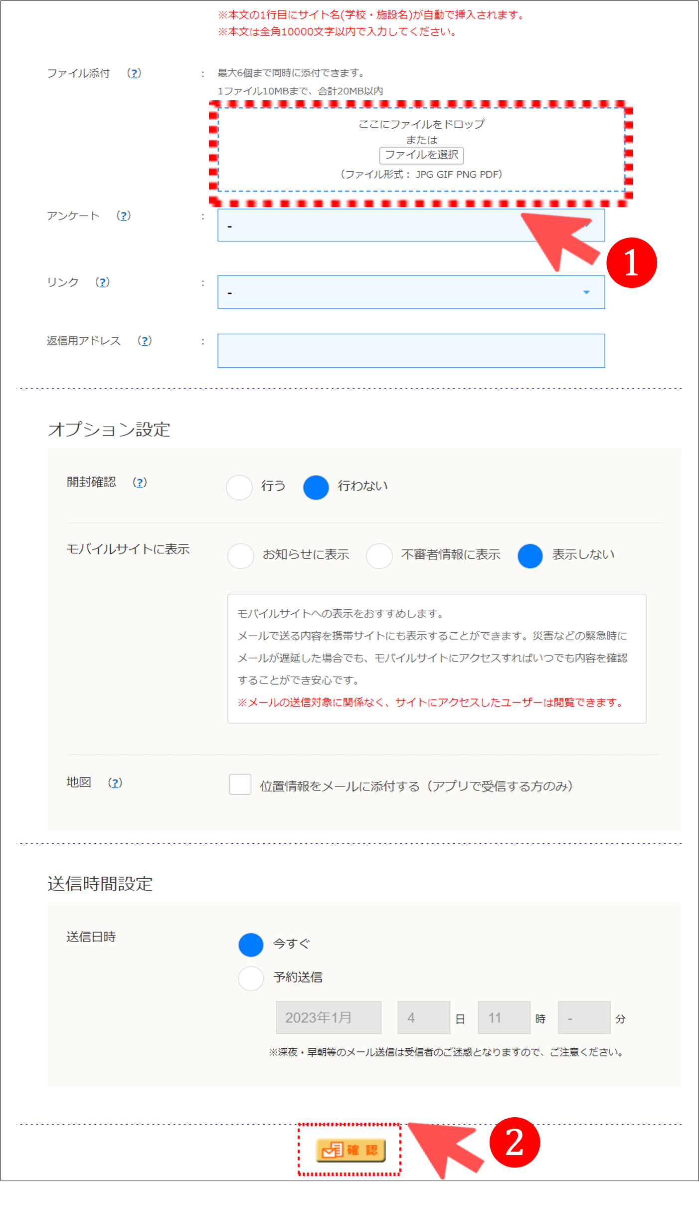 ※メール作成画面の開き方、メール送信の詳細手順はこちら