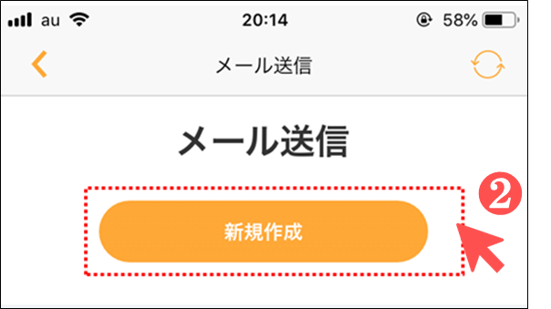 ❶ アプリ管理画面から、[メールの送信]をタップ