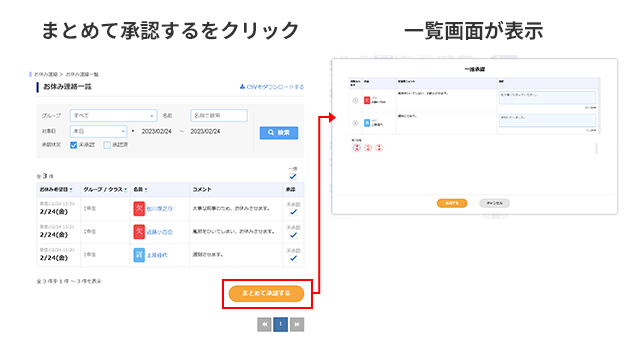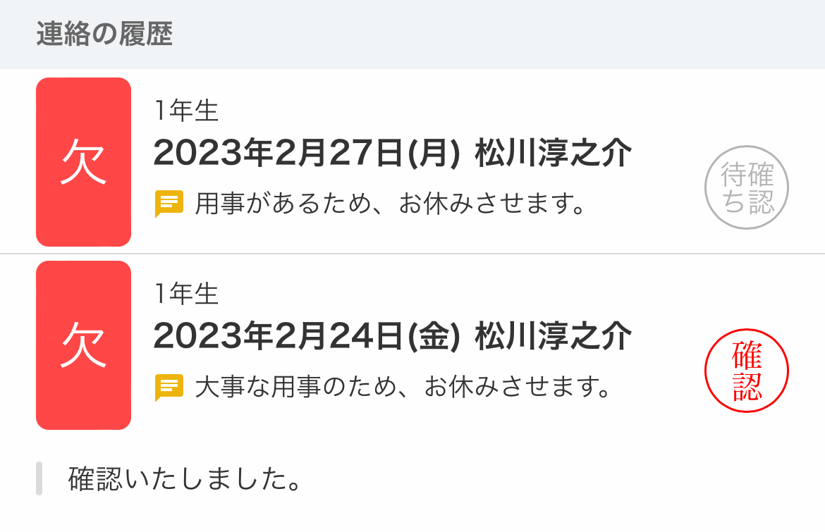 お休み連絡が承認されると一覧に承認スタンプを表示。承認状況を速やかに確認することができます。