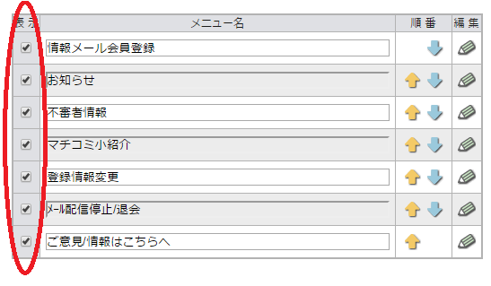 ※「登録情報変更」「メール配信停止/退会」を非表示すると、登録者自身での登録情報変更や退会手続きができなくなるのでご注意ください。