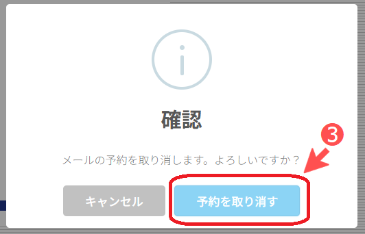 ➌ポップアップが表示されるので、「予約を取り消す」ボタンをクリック。