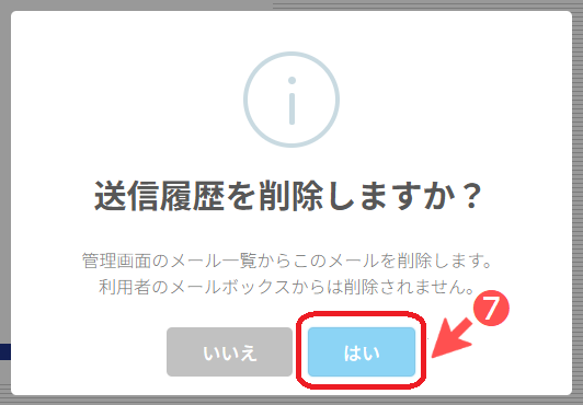 ❼「はい」ボタンをクリックすると一覧から削除されます。