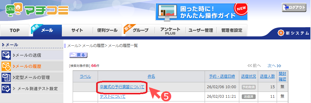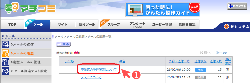 表示された一覧より、該当のメールのタイトル部分(リンク)をクリック。