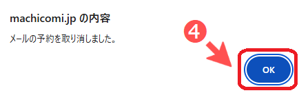 ➍取消完了のップアップが表示されるので、「OK」ボタンをクリック。