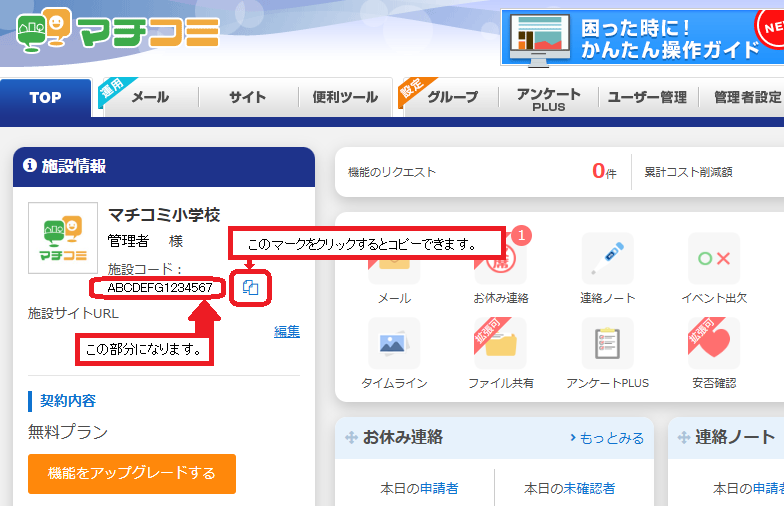 ホーム > 有料プラン契約・請求関連 > 施設コードの確認方法
