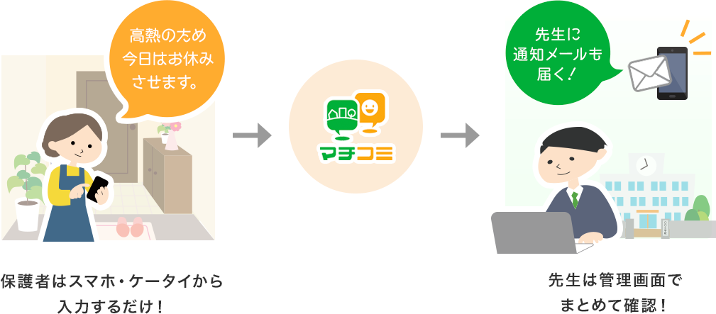 園児や児童・生徒がお休みするときの連絡を、マチコミで簡単に管理できる機能です。