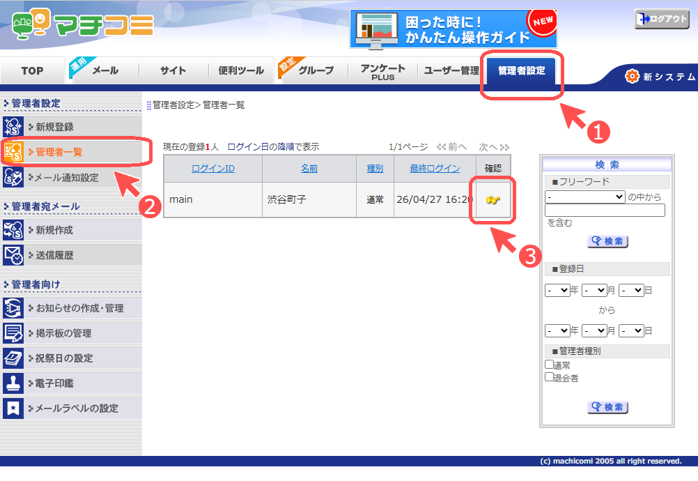 ❷ [管理者一覧]をクリック