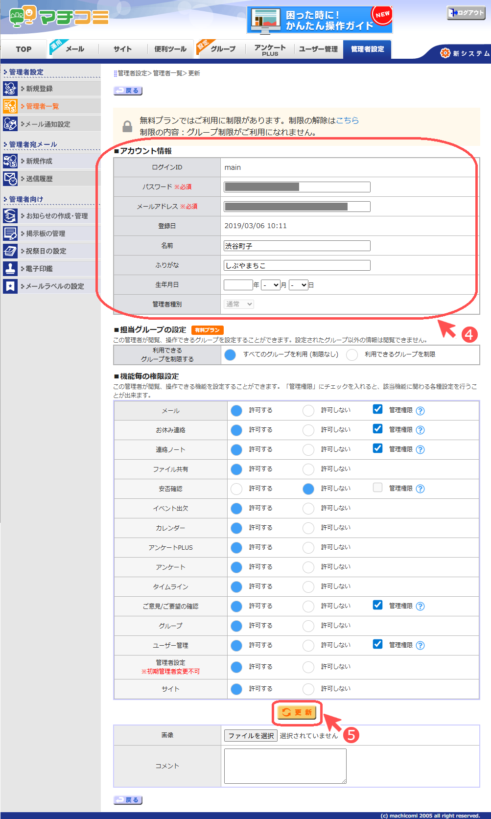 ■管理者情報の変更