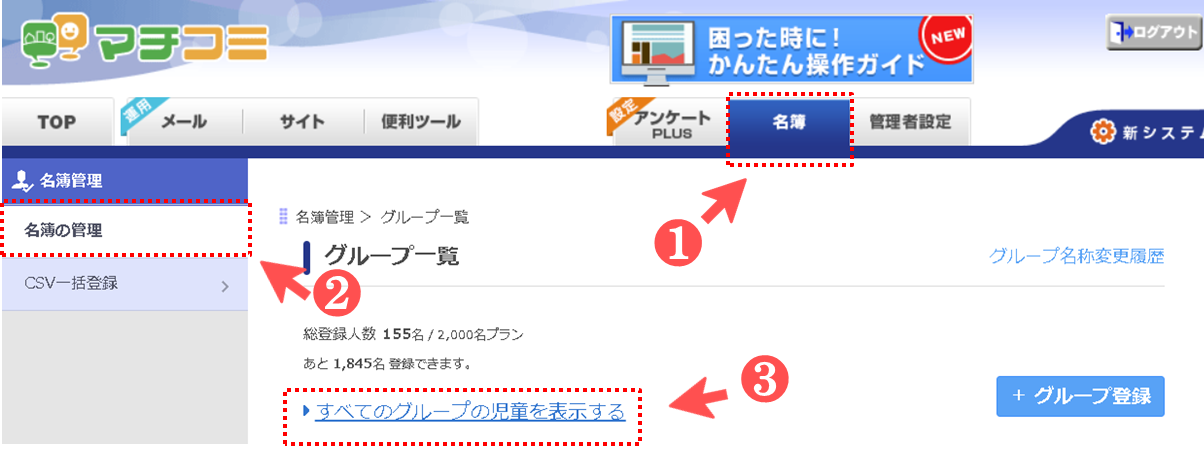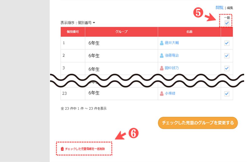 ➌「全てのグループの児童を表示する」ボタンをクリック