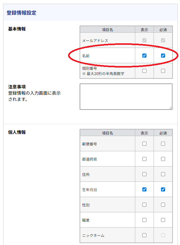 ホーム > 各機能の使い方 > ユーザー管理 > よくある質問 > ユーザーが登録する時に、名前を入力するところがありません