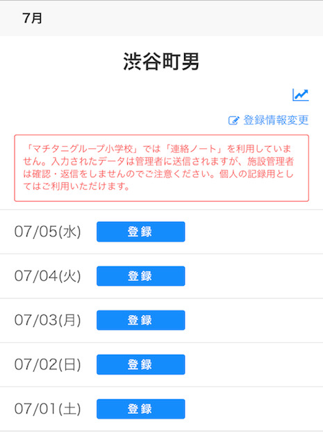 保護者のアプリから連絡ノートを利用しようとすると、以下の画面が表示されます。