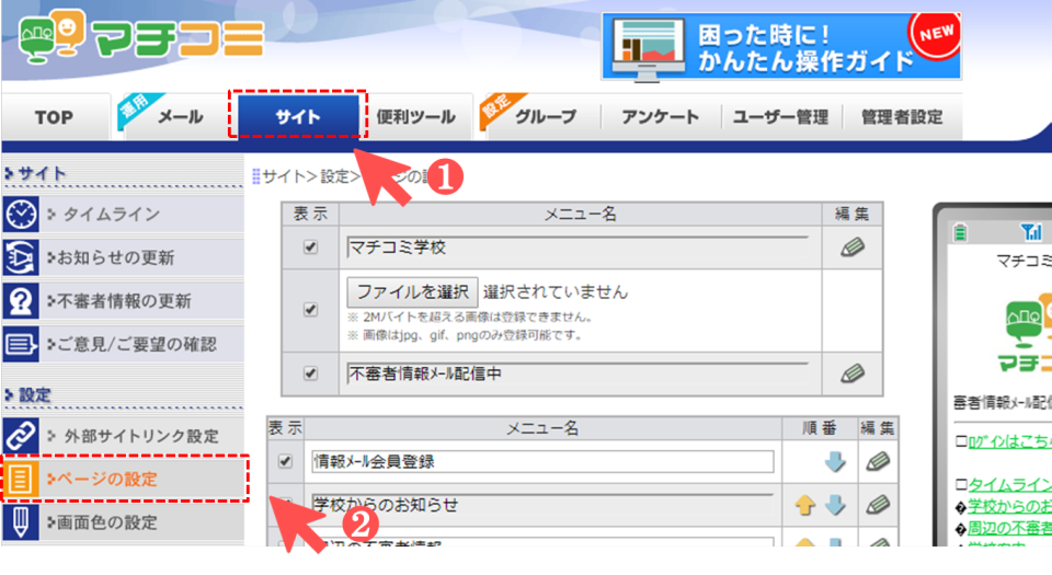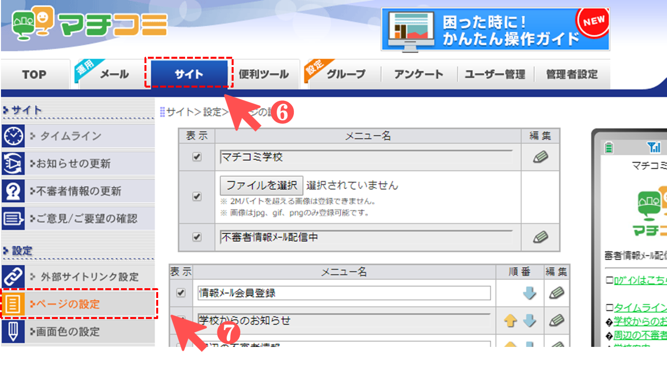 ❻ メニューより[サイト]をクリック