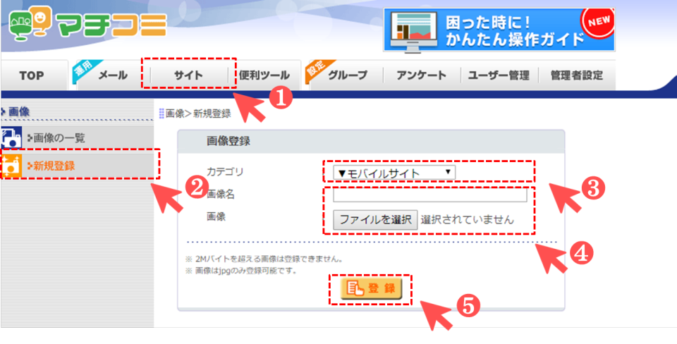 ❷ [画像]欄の[新規登録]をクリック