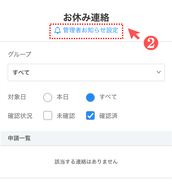 プッシュ通知を開封するとアプリの管理画面にログインし、お休み連絡の一覧が表示されます。