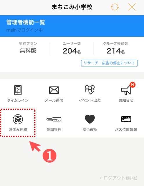 ※アプリ管理画面からお休み連絡機能を利用するには有料プランの契約が必要です。
