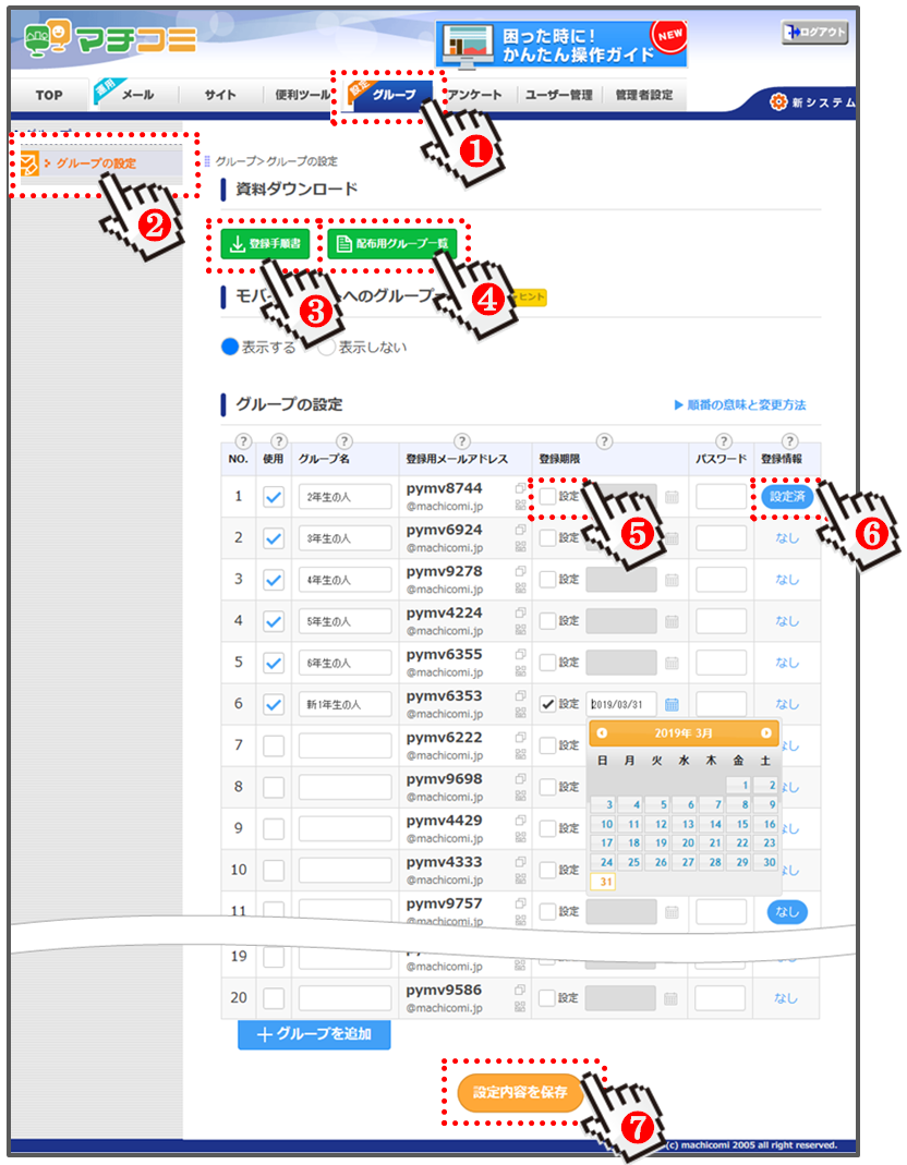 (登録期限が過ぎるとグループに登録が行えませんのでご注意ください。)