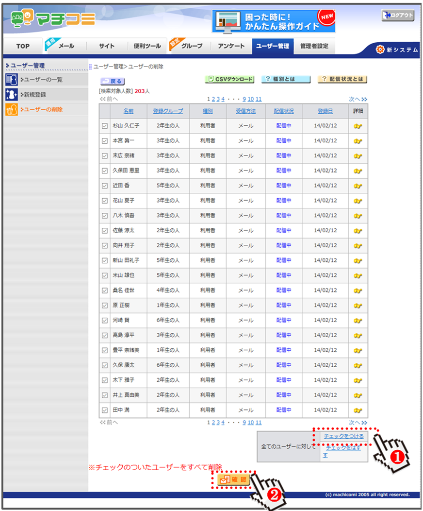 対象のユーザーをご確認の上、削除を行ってください。