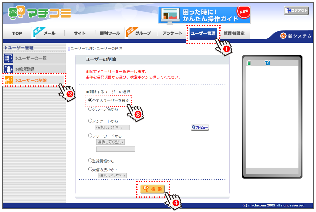 【手順2】「ユーザー管理」よりすべての登録ユーザーを削除